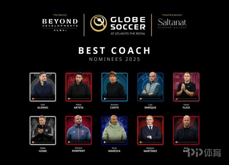 环球足球奖公布了2025年最佳主帅候选,阿隆索、阿尔特塔、孔蒂、斯洛特在列。