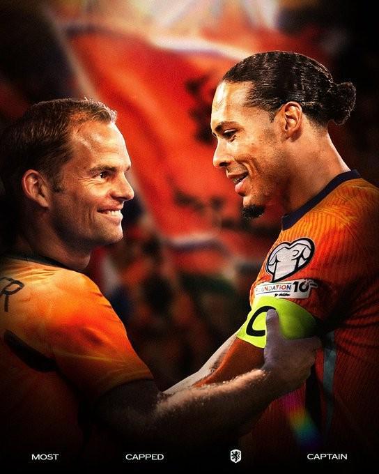 在荷兰队对阵立陶宛的比赛期间,荷兰队官方账号发布了一段特别视频,前主帅弗兰克-德波尔在视频中向范戴克送上祝贺。范戴克这场比赛第72次佩戴队长袖标,正式打破德波尔此前保持的队史队长出场纪录。