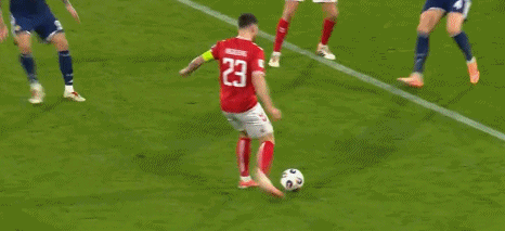 第29分钟,丹麦开出角球,霍伊伦头槌攻门稍稍偏出